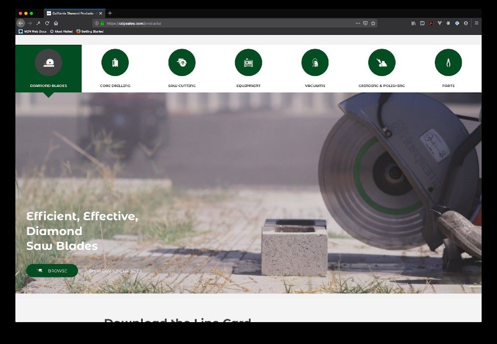 This site creates a unique menu experience using a Tabs module. The content of each tab is a saved row, allowing us to share information and link users to a specific product or service line.
