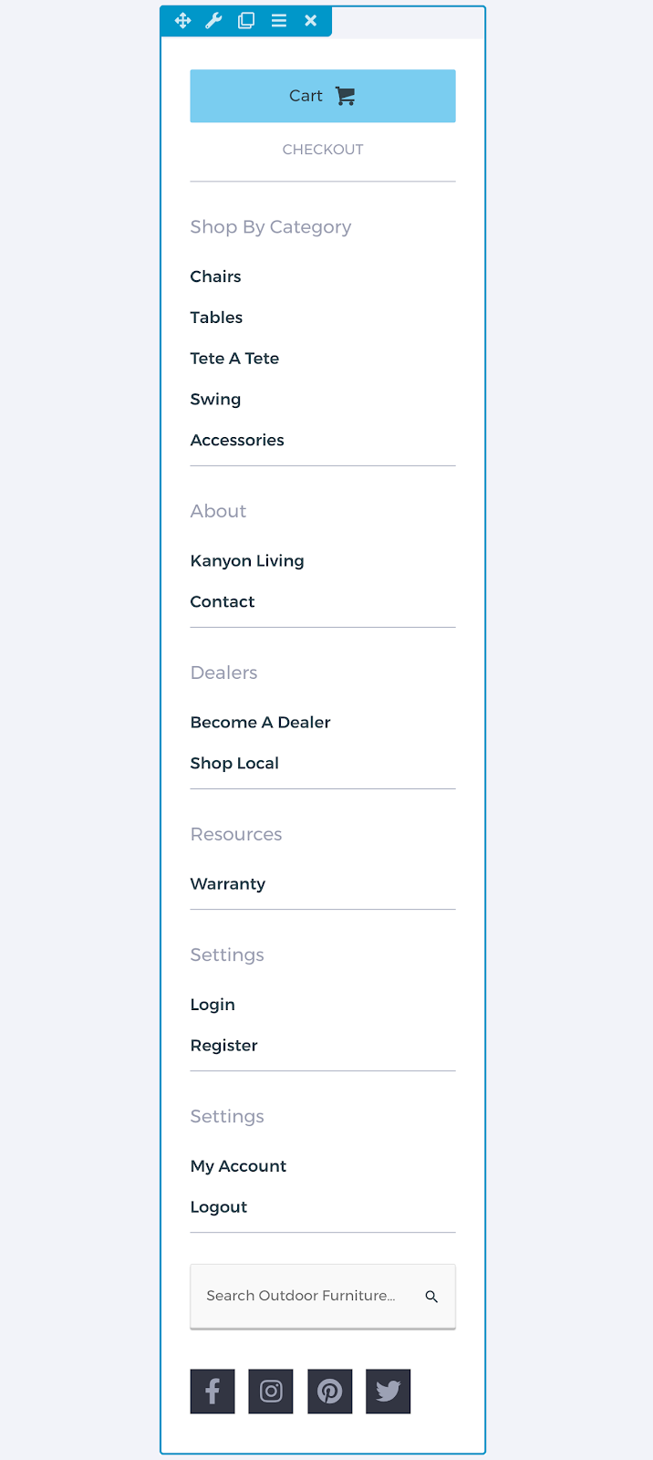 Finally, the site uses an off-canvas menu to feature various categories and other pages shoppers look for, shown in this screenshot.