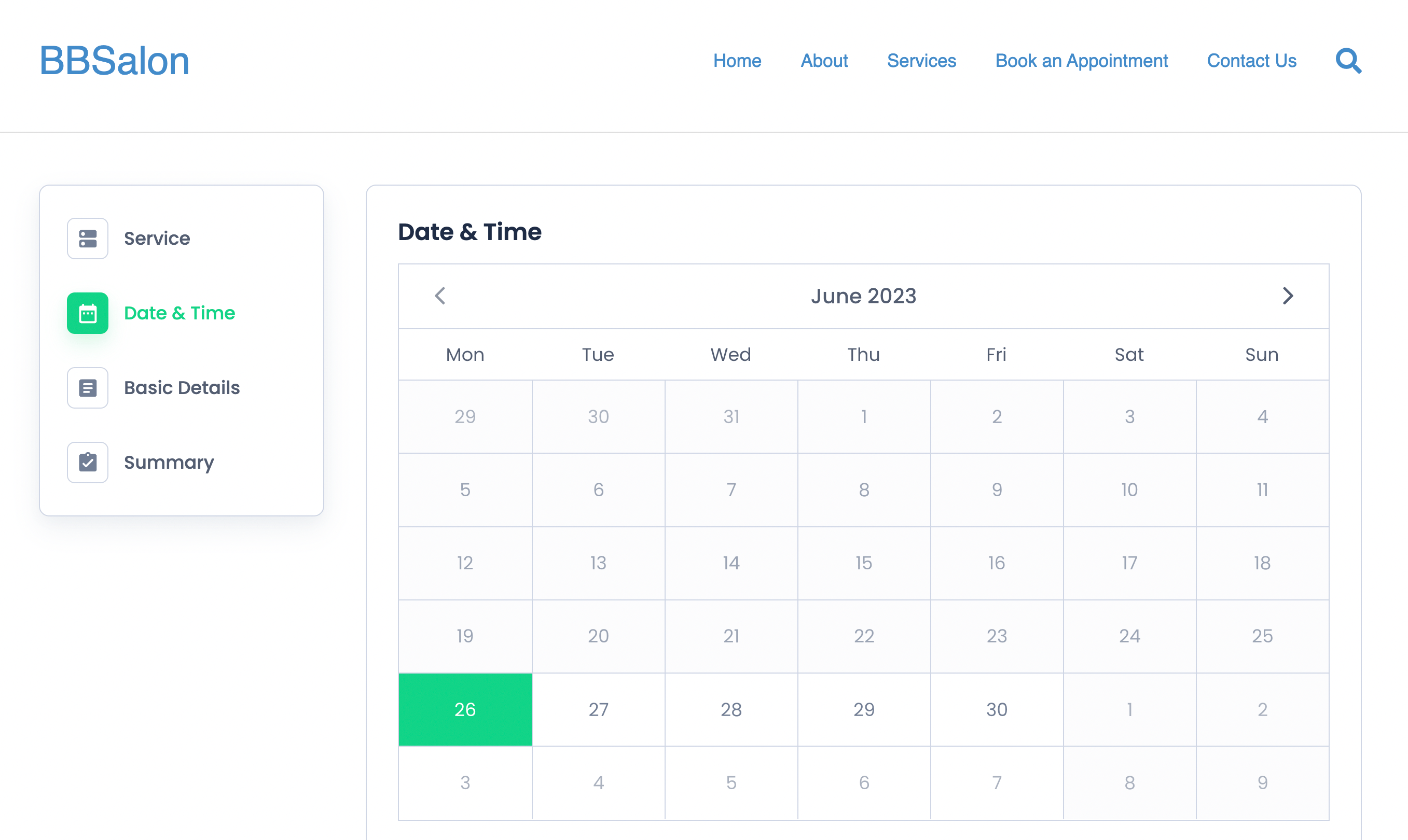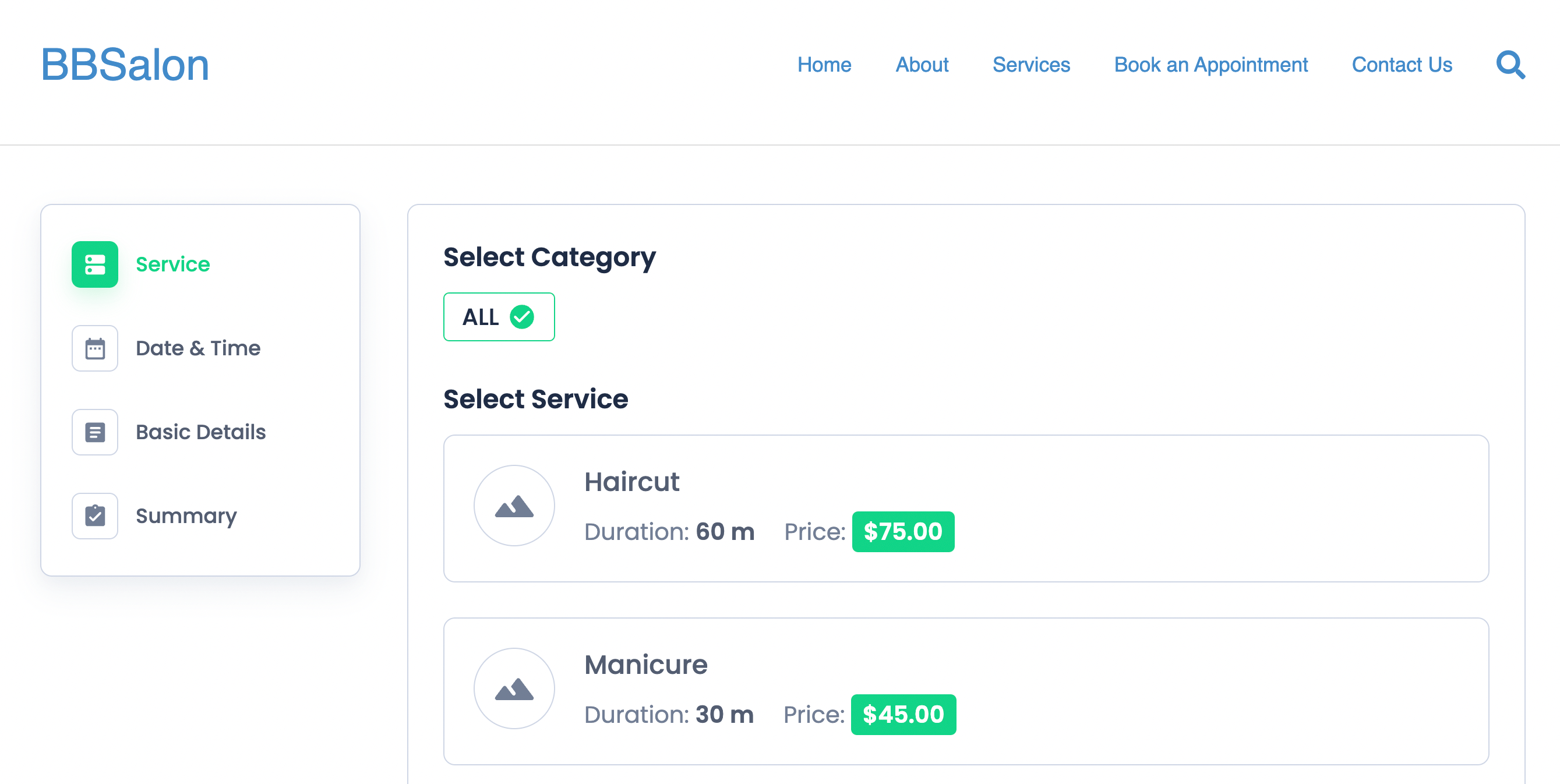 Customers will be able to easily choose a service, and then select a time and date from the calendar: