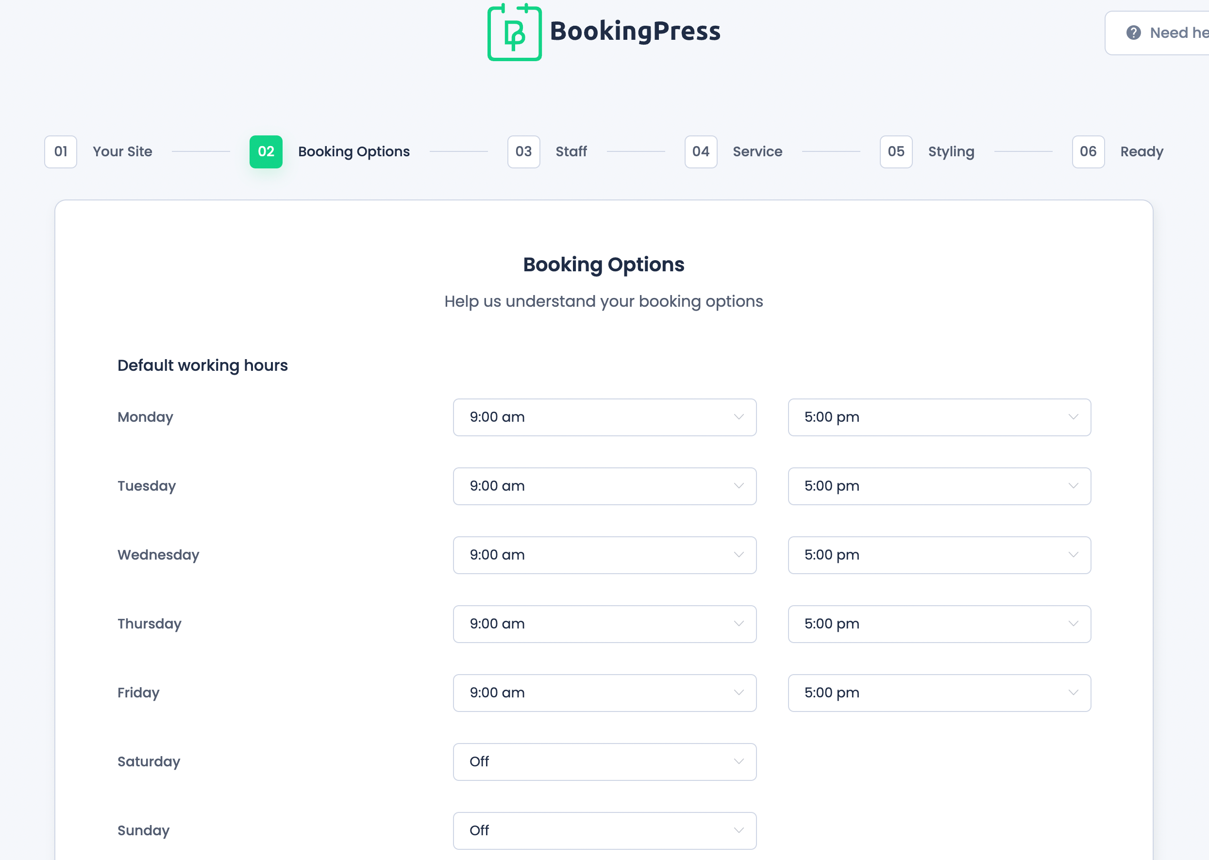 When you’re finished, hit Next to go to the Booking Options page and customize the team’s availability: