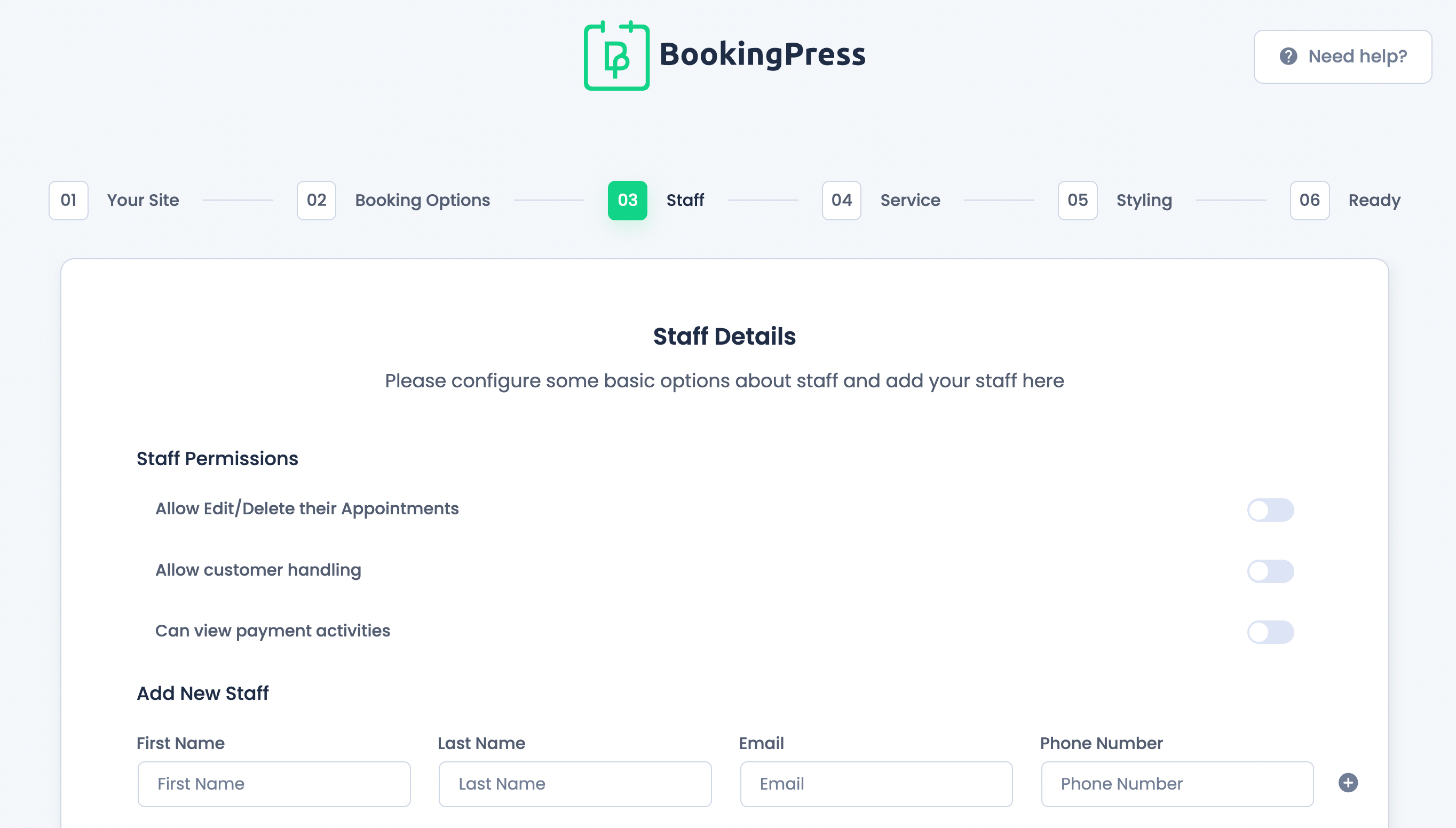 BookingPress Staff Details page