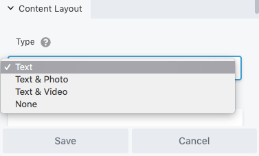At the bottom of the settings pop-up, you’ll need to set a content layout. You can either include just text, text and a photo, or text and a video: