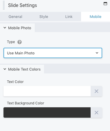 You can also edit the way the slide appears for mobile users. Just head to the Mobile tab to modify the photo and text: