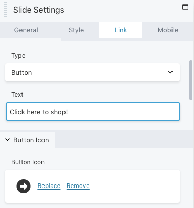If you want to direct users to another web page, click on Link. Here, paste the URL. Then you can add a call-to-action button and customize how it looks: