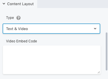 Based on the option you choose, new fields will appear. For instance, selecting Text & Video will allow you to paste a video embed code: