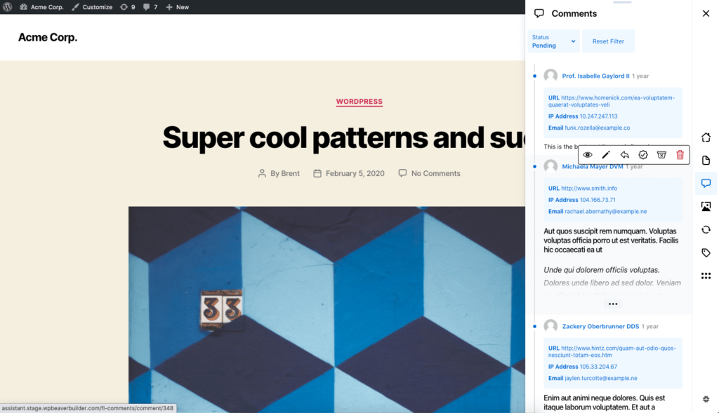Then you can select a particular comment and quickly approve, reject, or reply to it:
