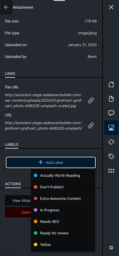 Finally, you can also label (label titles can be edited) your media files. Much like with pages and posts, this lets you organize your media in a way that suits your particular site and workflow.