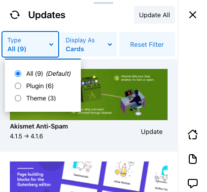 If there are multiple pending updates, you can use the filters at the top of the menu to sort through them.