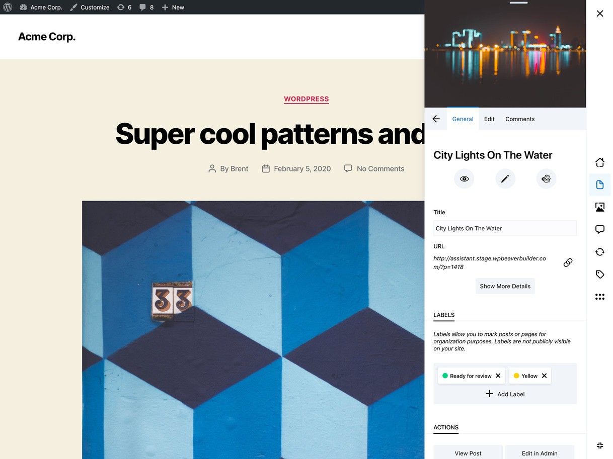 In a nutshell, Assistant gives you an easy way to interact with, organize, and manage your site’s content from the front end.