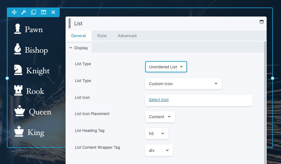 Lists in Beaver Builder have been available by entering markup in an HTML module. In 2.4, the new List Module makes it easy to create and style lists without dealing with any code. You can create regular, ordered, and unordered lists. List items can be styled and contain any combination of headings, icons, and rich text.