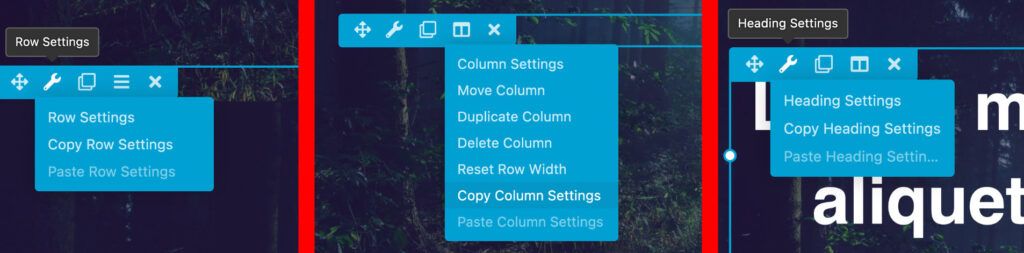 You are now able to copy and paste row, column, and module settings. This will save you from having to reconfigure multiple elements individually when making tweaks to the layout of your pages. There are even UI drop-down menus that allow you to quickly copy and paste these settings.