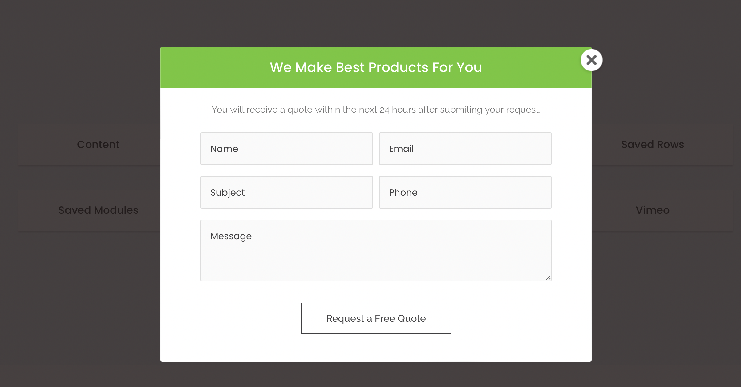 Plus, you can feature modal popup boxes containing videos, images, saved templates, and forms:
