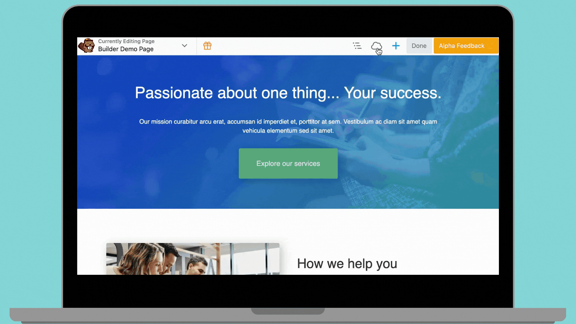 - Click the cloud icon in the top-right corner of the Beaver Builder toolbar.
