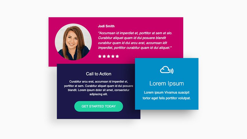 Many content layouts comprise things we consider primitives (e.g., headings, text, photos, icons, and buttons). Instead of creating new modules, we can build simple compositions using primitives for things like callouts, CTAs, info boxes, cards, testimonials, team members, and more. Adjusting and styling these compositions will be much more flexible than our existing modules, as you won’t be limited to the settings we’ve included in them.