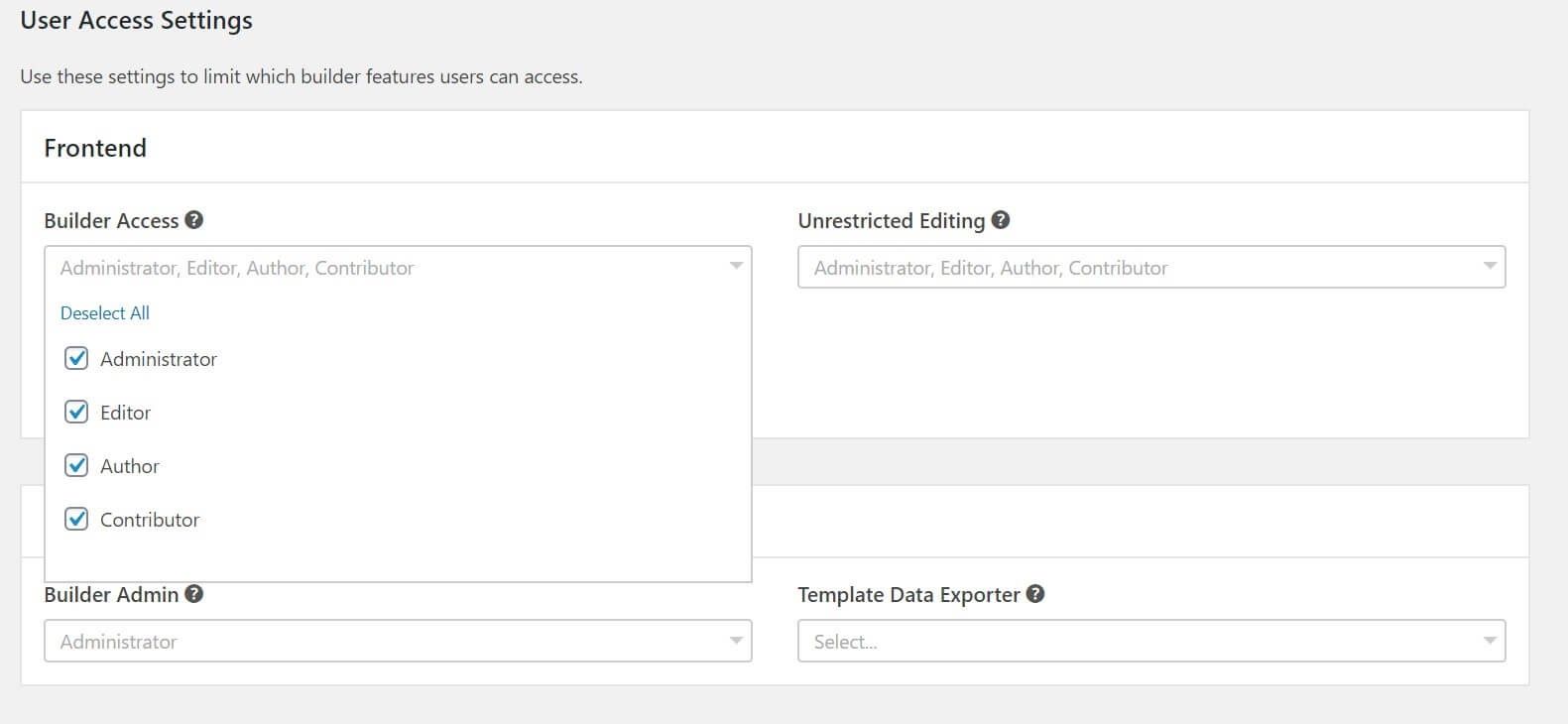 This includes who can access the Beaver Builder editor, who can make unrestricted edits, and who has access to the Beaver Builder menu with saved custom layout templates, rows, columns, and modules.