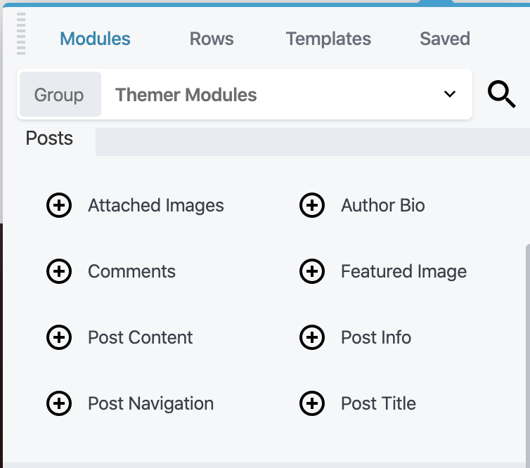 The Singular layout has a few of its own special modules, which can be accessed in the Content panel group called Themer Modules: