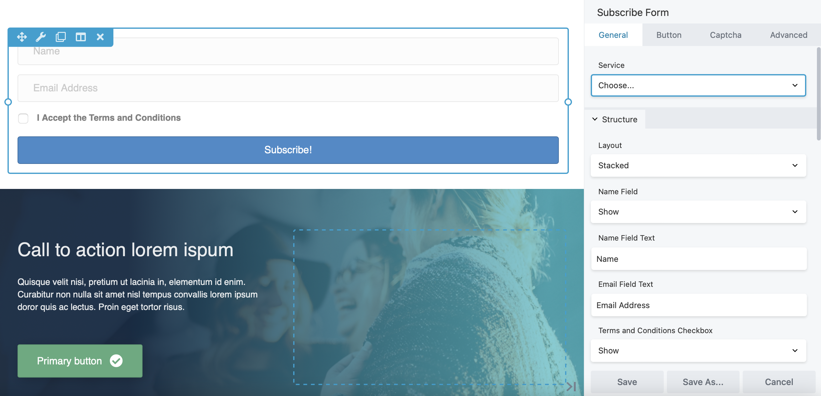 To get started, you’ll need to create an opt-in form. Fortunately, Beaver Builder comes with a Subscribe Form module that you can customize to suit your needs: