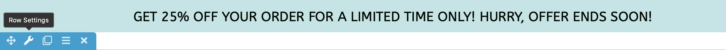 To edit the appearance of the banner, you’ll need to edit your row settings. You can do this by hovering over the row and clicking on the wrench icon: