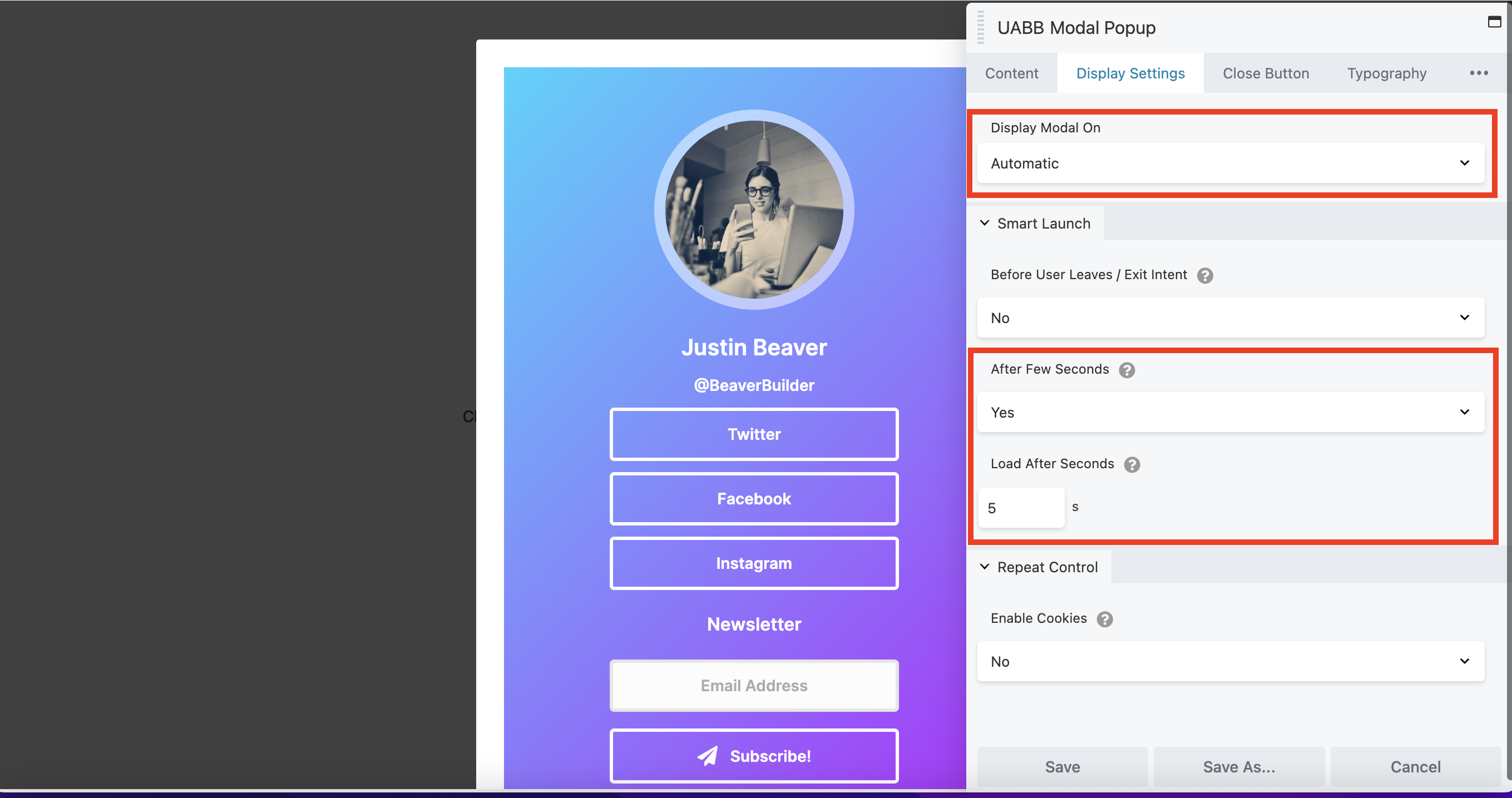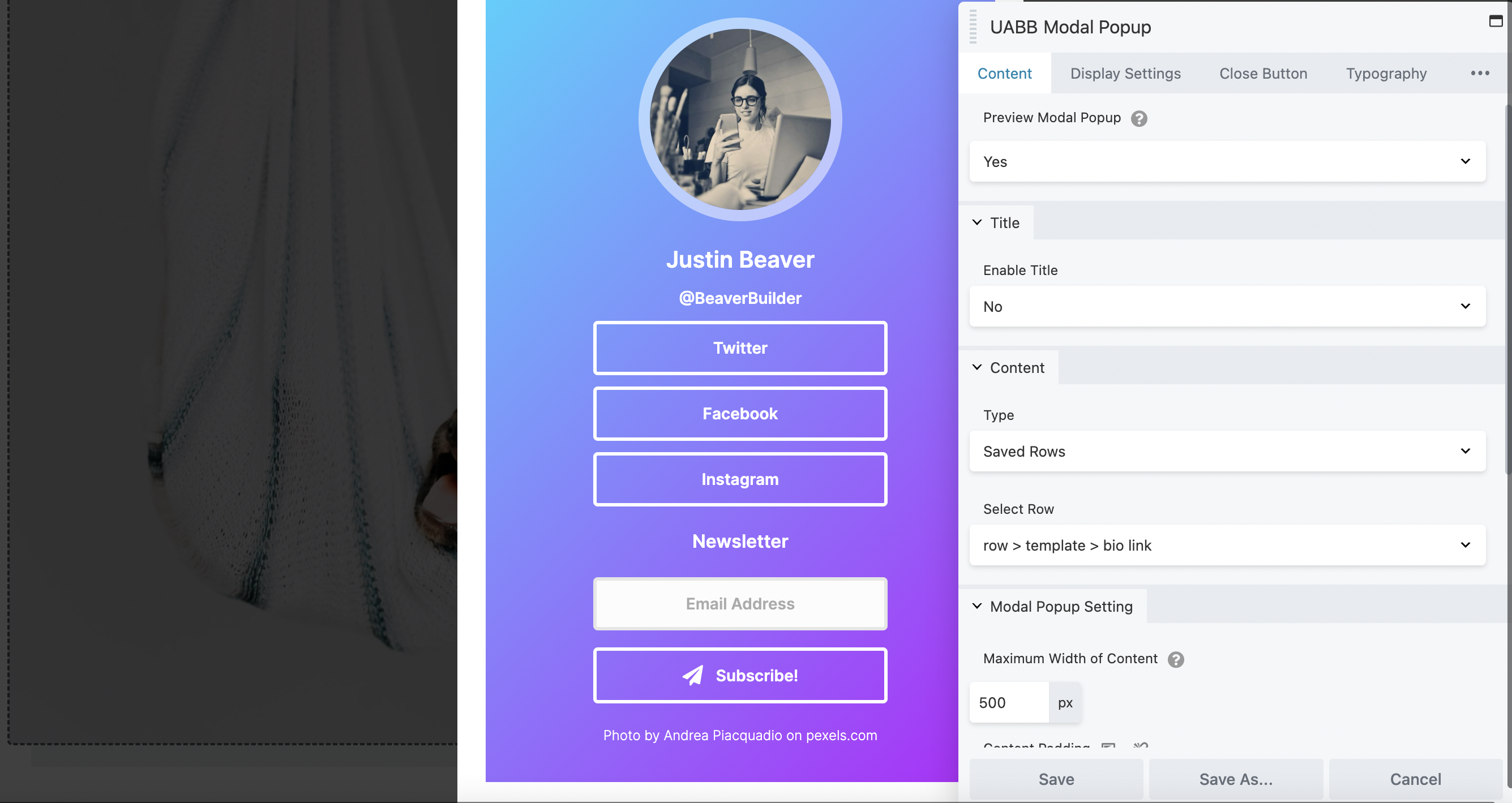 There are many ways to make your popups more engaging. For example, you can embed videos from YouTube and Vimeo, or create your own design and save it as a Saved Row or Saved Page Template. Beaver Builder conveniently stores all of your modal popups so that you can access them again in the future.