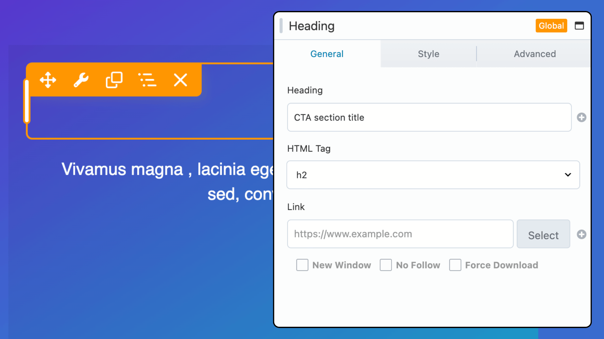 Global Rows, Columns, and Modules are ideal for content that must remain identical across every page Unlike Components, Globals do not allow selective edits; every instance is fully synced.
