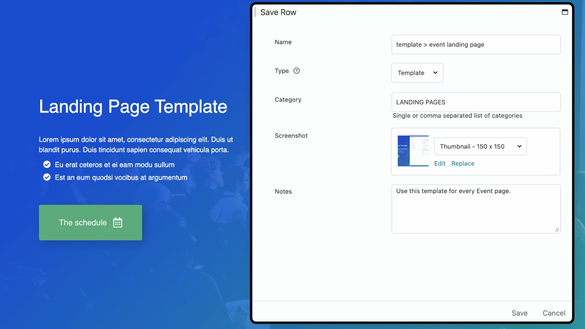 - Template-driven: Layout starting points for pages that will be customized individually.