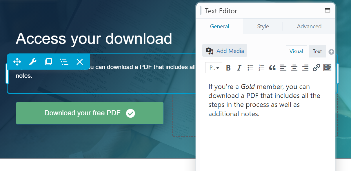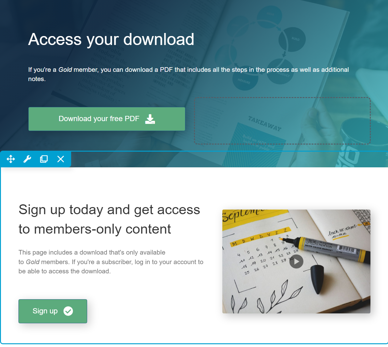 Now, we’re going to show you an example of adding members-only content to a page. We’ll set up a simple landing page that includes a button to download a PDF. This button will only appear for the users you choose.