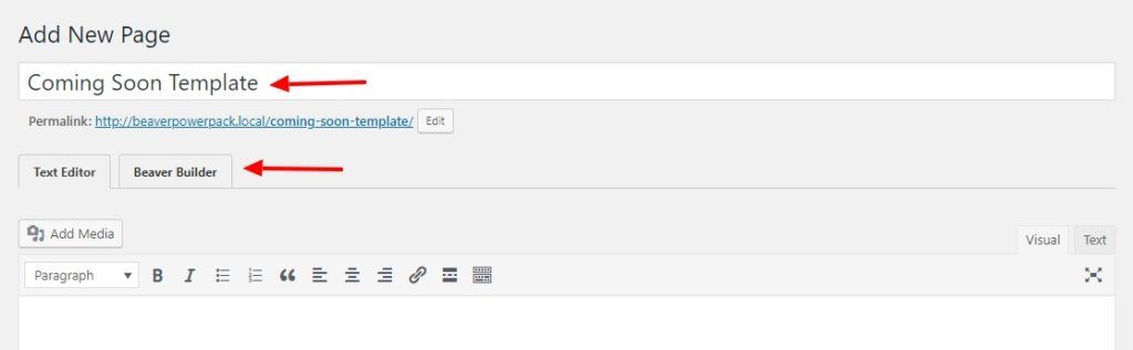 Log in to your WP Admin Dashboard and go to Pages. Now add a new page and give it a title. Launch the Beaver Builder editor by clicking the Beaver Builder tab.