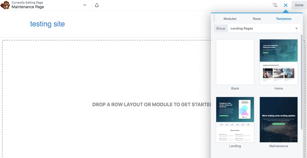 Even using Beaver Builder Lite, you’ll be able to access pre-made page templates. These include a simple maintenance mode page that you can customize to fit your website.