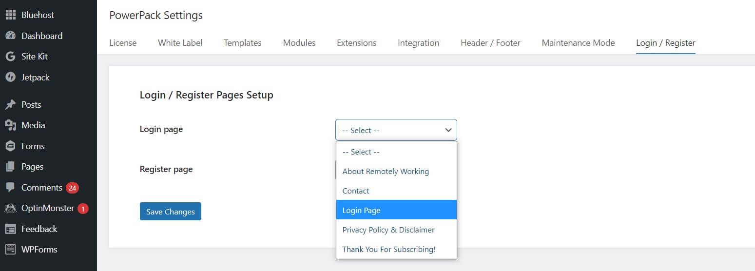Hit Save Changes and you’re done! This will set your new page as your WordPress login page. You can also follow this same process to set up a custom registration page.