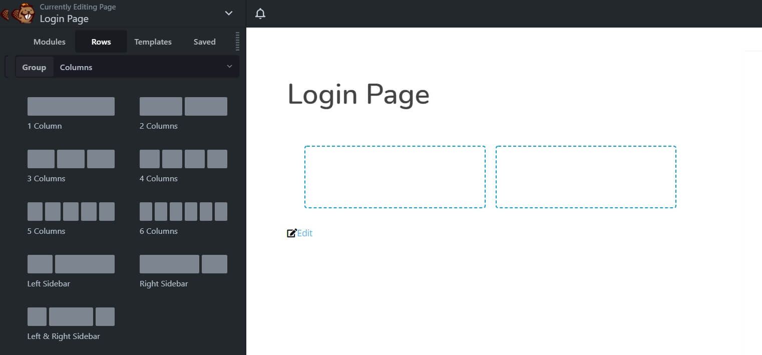 There’s a lot you can do in the Beaver Builder editor. To keep things simple, for our example we’re going to create a basic two-column login page layout.