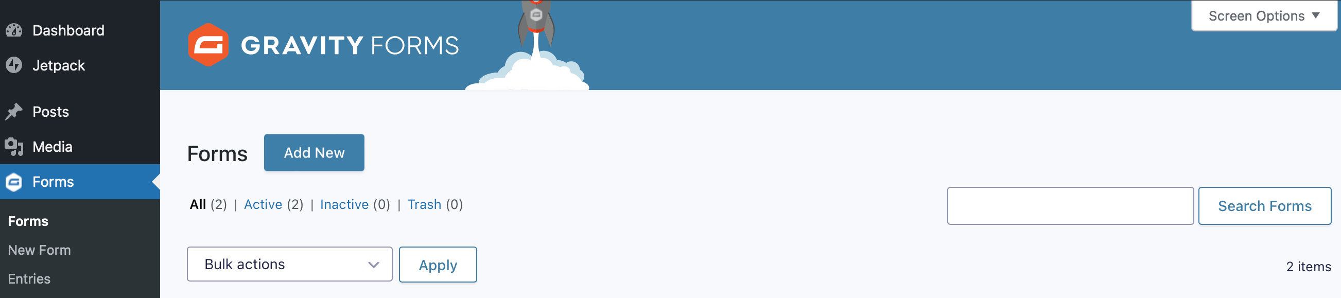 You should see Forms appear in the left sidebar. You’ll need to input your license key for the plugin. Now, you’re all ready to start building forms!