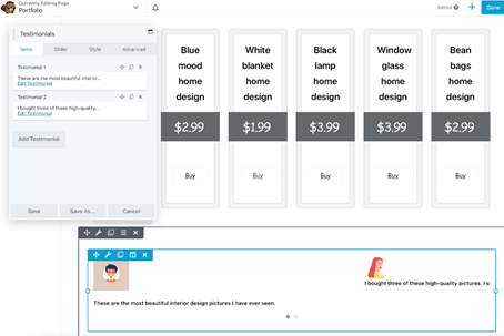 Lastly, you can attach a Testimonials module that’s designed to help encourage your potential customers to buy your products.