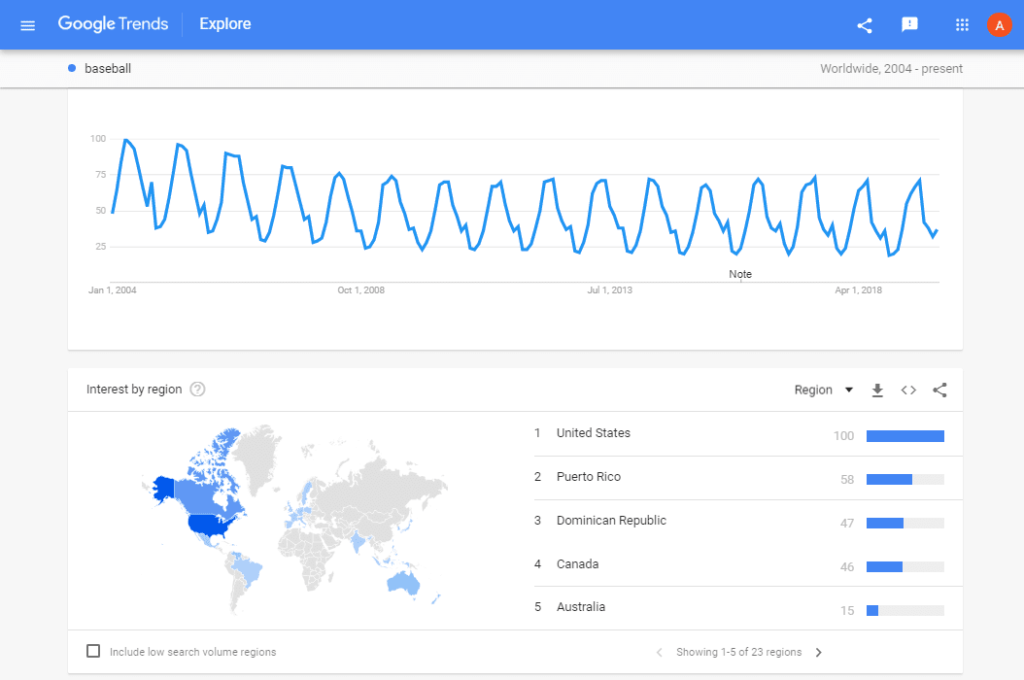 For example, the topic “baseball” is mostly popular in the United States but is also popular in Puerto Rico and the Dominican Republic. This makes Spanish a great option for a site about baseball.