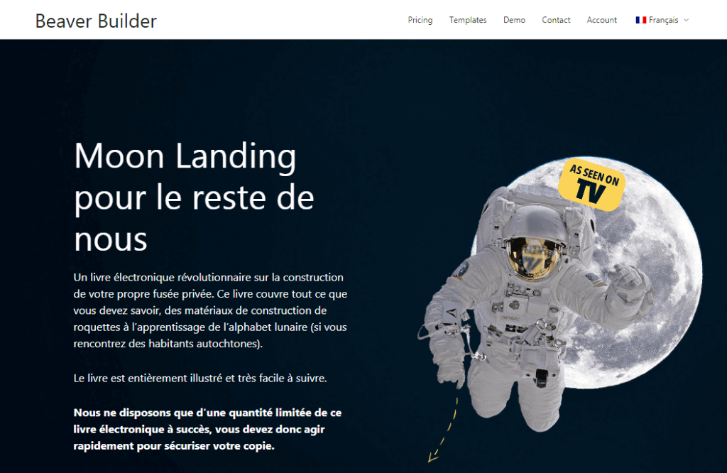 Beaver Builder is a free page builder plugin that helps you build custom layouts no matter which WordPress theme you use. You can add premium features, including templates, to Beaver Builder for as little as $99. The Moon Landing template, paired with a free WordPress theme called Astra, is featured in this tutorial. Check out our complete beginner’s guide to Beaver Builder if you need help with the page building process.
