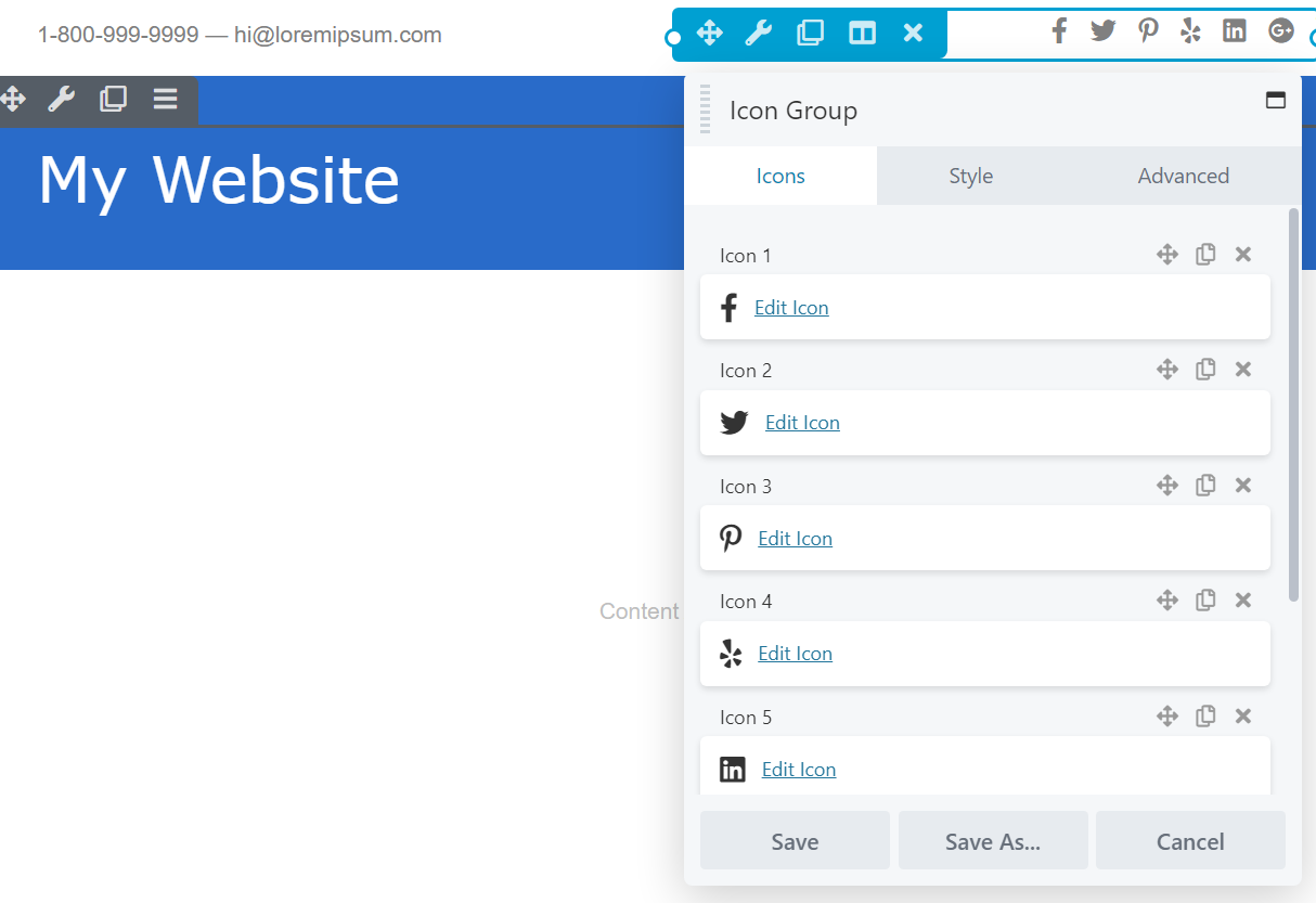 Another useful element found in most Beaver Themer header templates is the collection of social media icons. We include these icons using the Icon Group module since most modern websites use social media for marketing purposes.