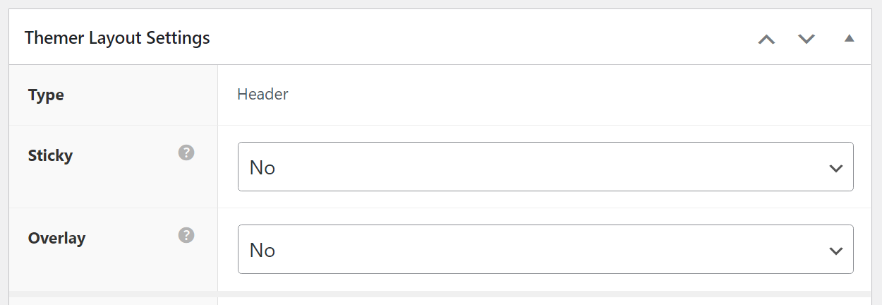 In the next screen, set a title for the template and select Themer Layout under the Type menu. For the Layout menu, select the Header option: