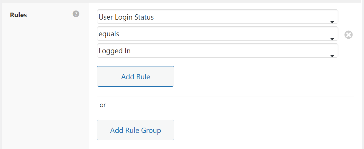 Finally, the Rules settings configure specific parameters that must be met for the header to appear. For example, you might display the template for only logged-in users. This setting can come in handy if you want to lead registered users to private parts of your website: