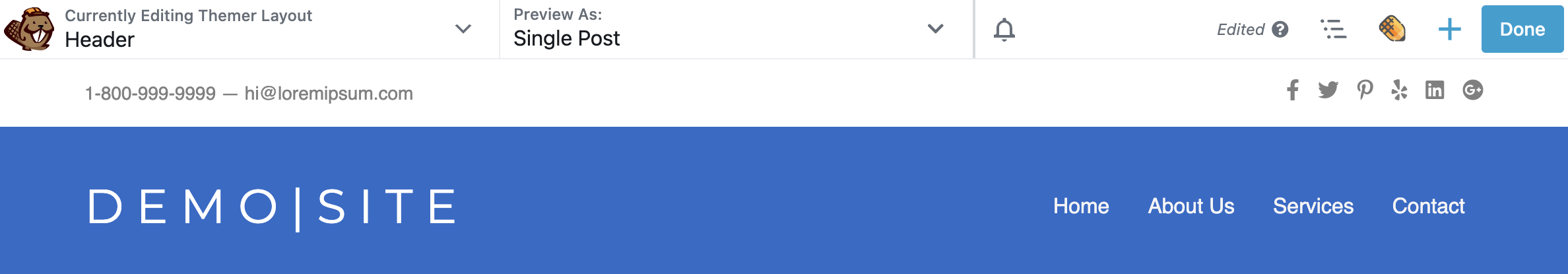 Since we’re using Beaver Builder to edit your header layout, you can easily update or swap out any of the modules you see here. In addition, you can modify any other aspect of the header’s layout and style.