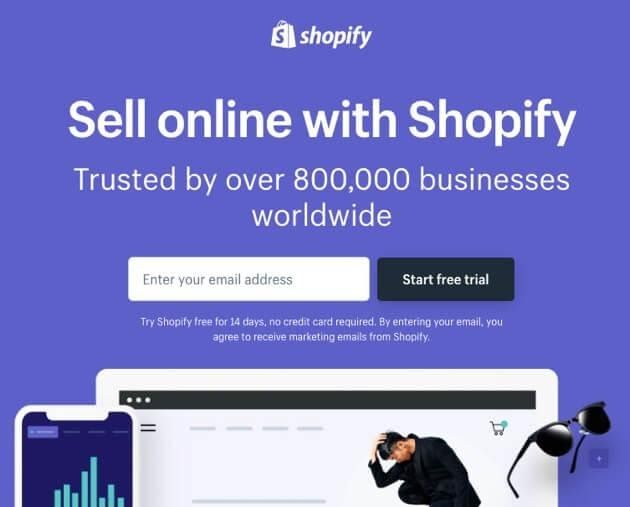 To get a sense of what a high-converting landing page looks like, let’s examine two top-notch examples. This one from Shopify includes all the elements mentioned above: