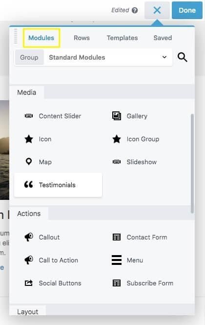 Beaver Builder can be used with pages, posts, and custom post types. The menu makes it easy to drag and drop elements to create the ideal layout for your landing pages. In this screenshot, you’d drag your module of choice and drop it into your layout: