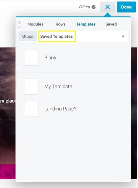 If you plan to create additional landing pages and want to use your layout again with slight variations, you can select Save Template instead. This will add your current page to the Templates tab in the Content panel: