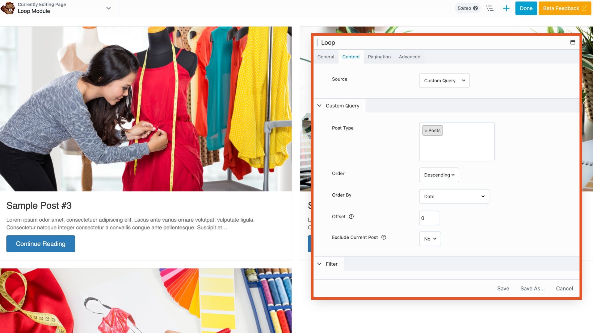 The Loop Module, included with Beaver Themer (starting in version 1.5 and requiring Beaver Builder 2.9 or later), gives you complete control over layout and design. It lets you build fully custom post loops by using individual Beaver Builder modules for each content element—boxes, photos, text, and more.