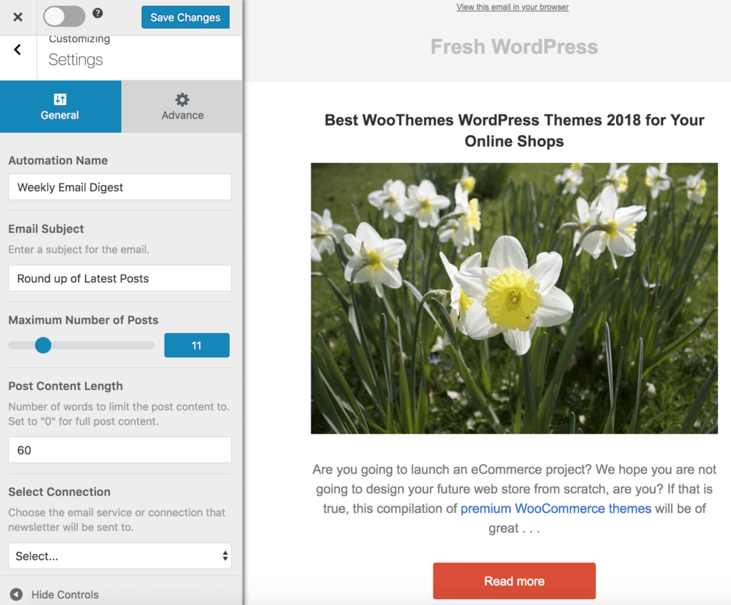 The Posts Email Digest feature of MailOptin.