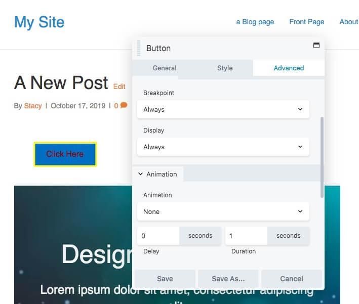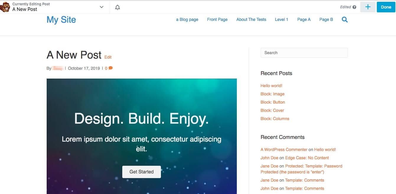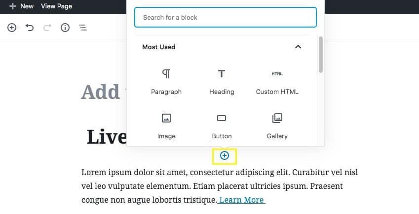 This opens the front-end, drag-and-drop editor. You’ll be able to see a live preview of what your published post will look like while you’re editing it.