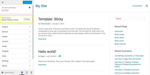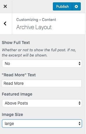 For example, to configure your Archive Layout settings in the Beaver Builder Theme, navigate to Appearance > Customize > Content > Archive Layout in your dashboard: