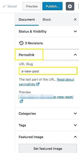 Just below the Permalink section is the Featured Image section. Click the gray box to upload a file or choose a file from your Media Library to be included at the top of your post and in thumbnails in archive listings. Note that where your featured image appears on your site usually depends on settings in your theme.