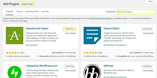 You can purchase premium plugins or install free plugins from the WordPress Plugin Directory found by navigating to the Plugins tab in your WordPress dashboard: