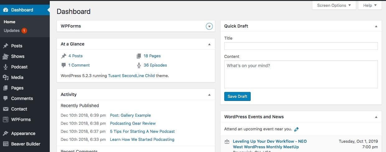 In order to get started with WordPress, there are a few terms you’ll need to know. Let’s start with the dashboard: