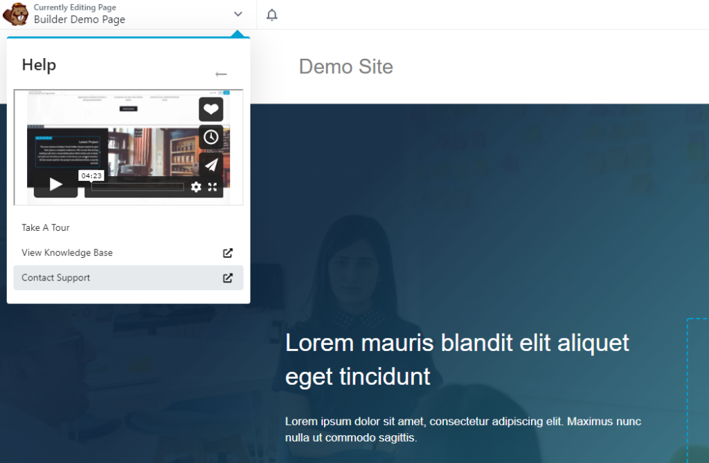 You’ve probably noticed that the Beaver Builder includes a Help button on the back end. This link opens a menu that includes a video about how to use the plugin, as well as links to: