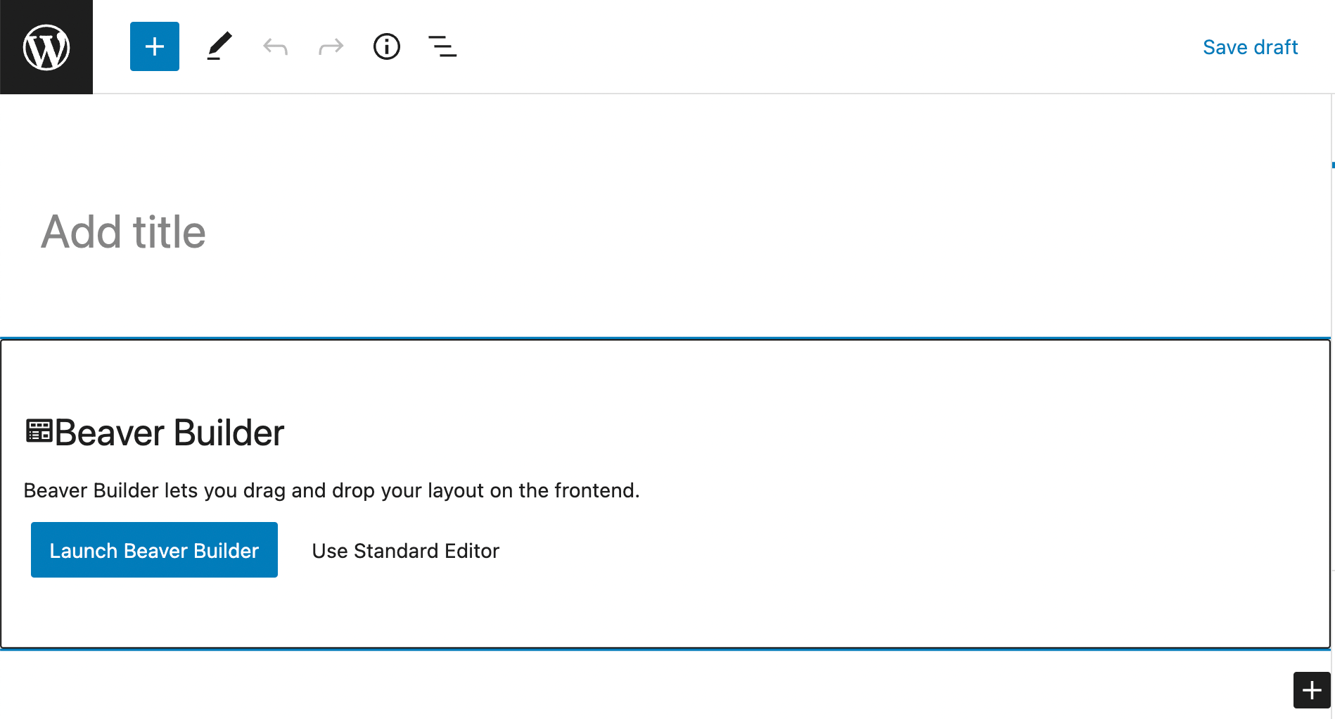 To get started, open WordPress and add a new page. Give your page a name and click on Launch Beaver Builder: